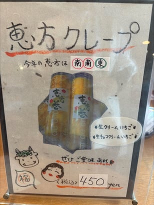 ラフラフでは毎年恒例の恵方クレープの