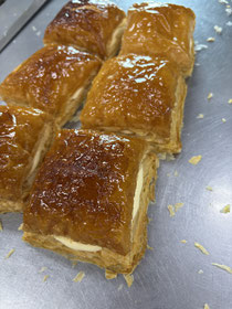 朝焼き上げたサクサクのパイに自慢のカスタードをはさみました。